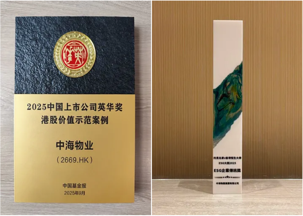近日,中國基金報主辦的“2025中國資本市場可持續發展論壇”在上海舉行,第四屆灼見名家x香港恒生大學ESG大獎在香港頒獎。中海物業憑藉在環境、社會及治理(ESG)領域的扎實實踐與卓越表現,榮獲“港股價值示範案例及港股ESG示範案例”和“ESG企業傳訊獎”兩項殊榮,體現了資本市場與學術機構對公司在可持續發展方面的高度認可。