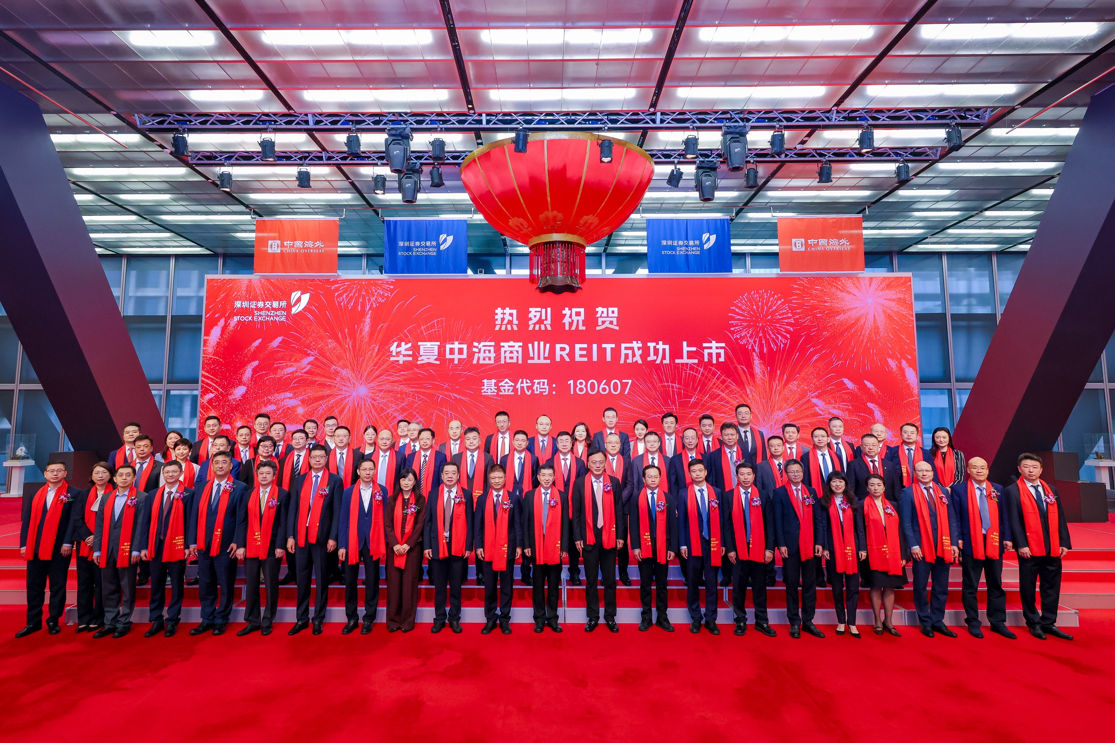 10月31日,華夏中海商業REIT(基金代碼:180607)在深圳證券交易所成功上市。中建集團黨組成員、總會計師黃杰,中海集團董事長顏建國,深圳證券交易所黨委委員、副總經理李鳴鐘,華夏基金總經理李一梅參加基金上市儀式並發表致辭。中海集團總經理張海鵬,中海集團領導莊勇、張智超、巢剛出席活動。